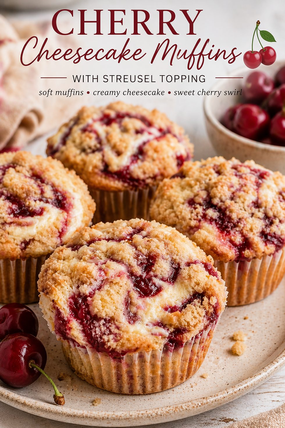 Decadent Cherry Cheesecake Muffins with Buttery Streusel Topping Recipe